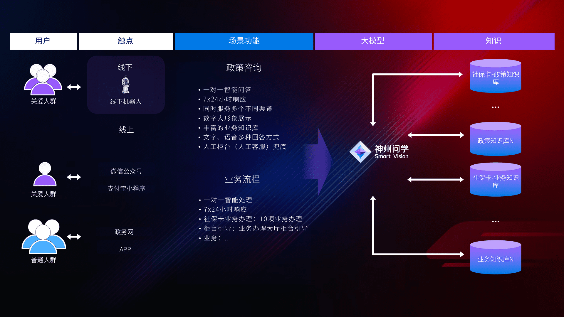 • 线上线下全覆盖:线上提供微信公众号、、支付宝小程序、、、政务网、、app多种渠道,,与线下机器人形成完整服务体系。。。